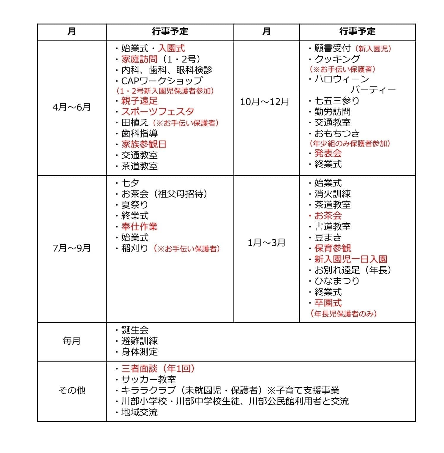 ※赤文字は保護者参加となります。